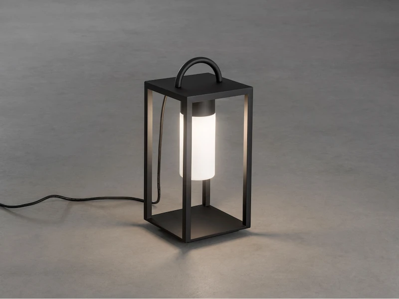 Gefertigt ist die LED Gartenleuchte aus schwarz lackiertem Aluminium mit einem opalen Glas.