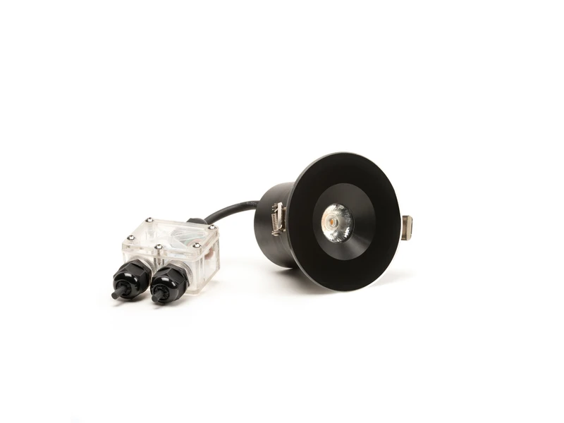 Gefertigt ist die Deckenlampe aus Schwarz mattem Metall mit klarem Glas. Der Spot hat einen Durchmesser von 11cm sowie eine Einbautiefe von 8cm. Als Einbaumaß benötigen Sie einen Deckenausschnitt von 9,6cm und eine Einbautiefe von 10cm für den flachen Strahler.