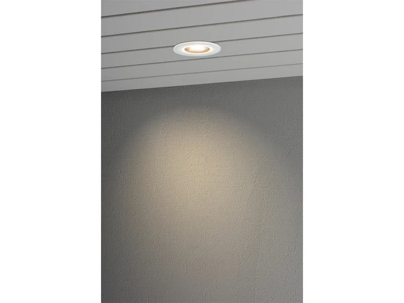 Gefertigt ist die Deckenlampe aus Weiß mattem Metall mit klarem Glas. Der Spot hat einen Durchmesser von 11cm sowie eine Einbautiefe von 8cm. Als Einbaumaß benötigen Sie einen Deckenausschnitt von 9,6cm und eine Einbautiefe von 10cm für den flachen Strahler.