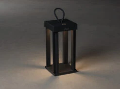 Diese mobile 42cm hohe Outdoor-Laterne aus schwarzem Aluminium vereint Mobilität und Funktionalität auf harmonische Weise. Mit ihrem kompakten und leichten Design können Sie sie mühelos überall hin mitnehmen. Egal, ob Sie sie auf einem Tisch platzieren oder auf den Boden stellen, sie passt sich flexibel an Ihre Bedürfnisse an und sorgt für eine zuverlässige Beleuchtung, wo immer Sie sie brauchen.