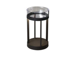 Diese mobile Outdoor-Laterne aus grauem Aluminium vereint MobilitĂ€t und FunktionalitĂ€t auf harmonische Weise. Mit ihrem kompakten und leichten Design können Sie sie mĂŒhelos ĂŒberall hin mitnehmen. Durch die Höhe von nur 25 cm passt sie perfekt auf Ihren Terrassentisch, Ihre Veranda oder Ihren Balkon. Zudem wird sie inklusive einer Glasschale geliefert, welche auf die Leuchte gestellt werden kann. Somit können Sie sie zusĂ€tzlich mit Pflanzen schmĂŒcken und machen Sie zu einem besonderen beleuchteten Deko-Element.