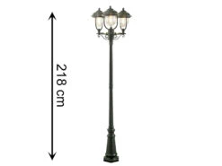 Die Außenleuchte im Landhausstil hat eine Höhe von 218cm und bietet als Gartenbeleuchtung, Terrassenbeleuchtung, Wegebeleuchtung oder Straßenbeleuchtung eine optimale Ausleuchtung. Sie ist 60cm breit und 60cm tief.