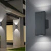Die Wandleuchte hat eine Höhe von 30,5cm und eine Breite von 24,5cm bei einer Ausladung von 22cm. Mit einer Schutzart von IP44 kann sie in fast jedem Outdoor Bereich zur Fassadenbeleuchtung eingesetzt werden, z.B. als Außenbeleuchtung für Ihren Eingangsbereich, als Terrassenbeleuchtung, als Balkon Beleuchtung oder auch als Wegeleuchte oder Gartenbeleuchtung an Hauswänden.
