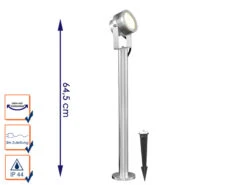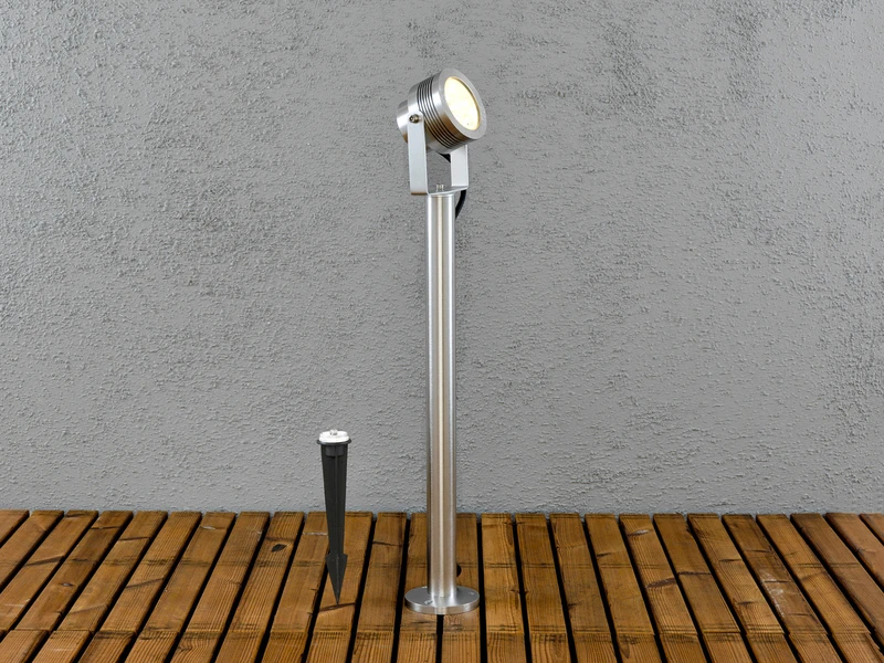 Diese Wegeleuchte ist Dank IP44 Spritzwasser geschützt und wird inkl. Erdspieß und 3 Meter Anschlusskabel geliefert.