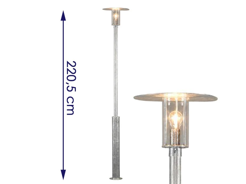 Die Standleuchte hat eine Höhe von 220 cm und ist Dank IP54 für den gesamten Außenbereich geeignet.