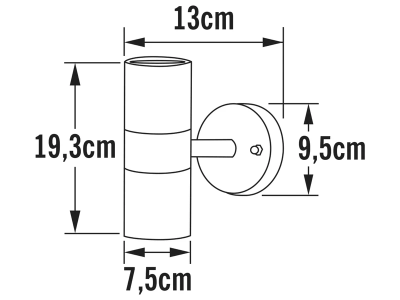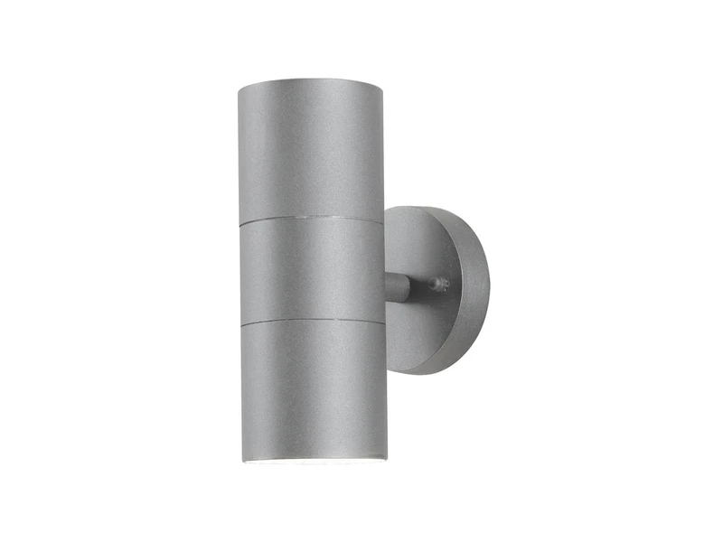 Die 19,5cm hohe Zylinderförmige Leuchte ist aus Aluminium in der Farbgebung Grau gefertigt und ist mit ihrer Schutzklasse IP44 für den Außenbereich einsetzbar.
