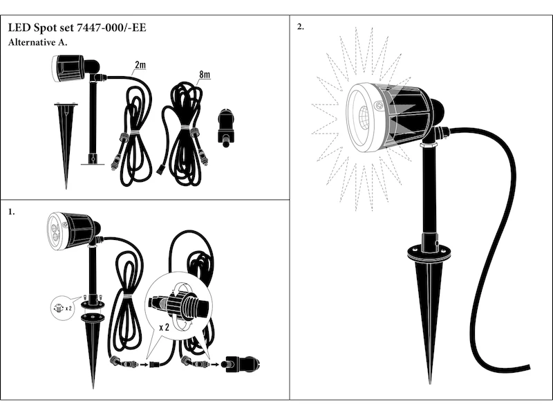 Mit der robusten Zuleitung von 10 Metern und Dank IP44 integriert sich der Gartenstrahler perfekt in Ihre Gartengestaltung und kann für tolle Lichteffekte sorgen. Dank des Erdspießes ist die LED Außenleuchte schnell und einfach angebracht. Einmal aufgestellt, können Sie diese Leuchte in die von Ihnen gewünschte Richtung drehen, um so die für Sie ideale Beleuchtung zu schaffen.