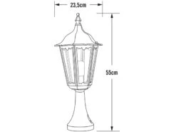 Mit einer Höhe von ca. 55 cm und einem Durchmesser von ca. 23 cm ist diese Standleuchte ideal für den Eingangsbereich, die Einfahrt, an Treppen oder für die Terrasse und bietet eine optimale Ausleuchtung.