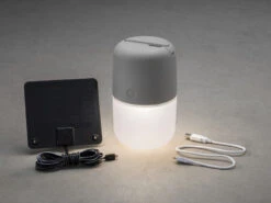 Allein im Hellen ist die Solarlampe mit ihrem grauem KunststoffgehÀuse und dem opalen Acrylglas schon ein toller Blickfang. Da die Leuchte ohne Kabel auskommt, können Sie diese Gartenlampe als Tischleuchte auf der Terrasse und im Garten nutzen oder sie aufhÀngen um besondere Lichtpunkte zu schaffen. Als besonderes Highlight lÀsst sich die Solarlampe in drei Stufen dimmen. So können Sie zwischen einer guten Ausleuchtung z.B. beim Essen, bis hin zu einem dezenten Orientierungslicht wÀhlen.