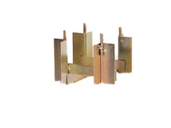 Das Fundament wird bis zu den Endstücken eingelassen. Der Fuß der oben genannten Pfähle wird dann mit seitlich eingeführten Schrauben mit den End- / Aufnahmestücken des Fundaments verschraubt.