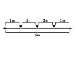Das Verlängerungskabel hat eine Länge von 6 Meter und 3 Anschlüsse im Abstand von 2 Metern.