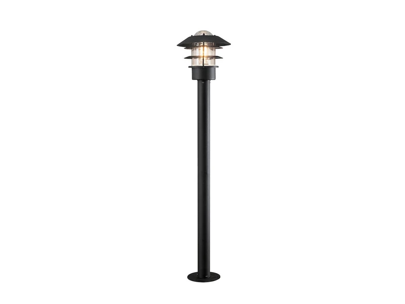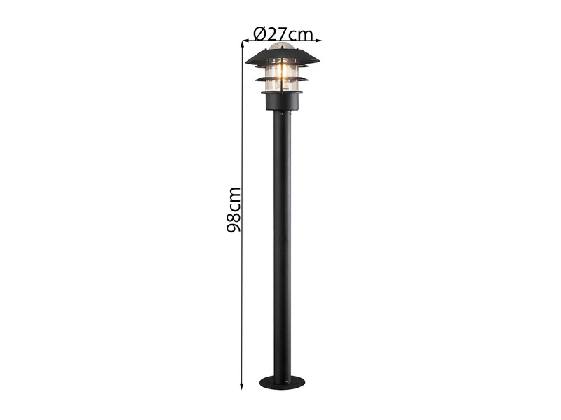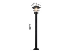 Gefertigt ist die 98cm hohe Außenleuchte aus Aluminium in der Farbgebung Schwarz und ist mit ihrer Schutzklasse IP23 für den Außenbereich geeignet.