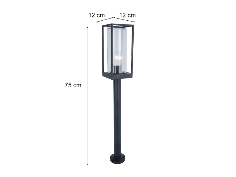 Die Wegeleuchte hat eine Höhe von 75cm und eine Breite von 12cm. Mit einer Schutzart von IP44 kann sie in fast jedem Outdoor Bereich zur Beleuchtung eingesetzt werden, z.B. als Außenbeleuchtung für Ihren Eingangsbereich, als Terrassenbeleuchtung oder auch als Wegeleuchte im Garten.