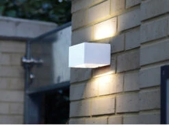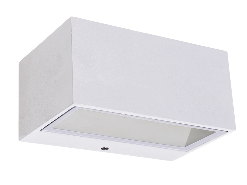 Gefertigt ist die Außenlampe aus wetterbeständigem Aluminiumguss. Durch ihre eckige Form passt die weiße Wandleuchte zu vielen Hausfassade und ergänzt das Gesamtbild harmonisch.
