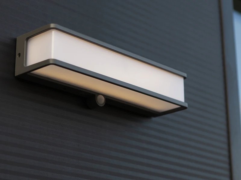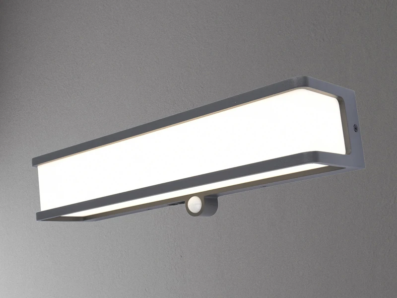 Sobald der integrierte Bewegungssensor bei Dunkelheit eine Bewegung in einem Erfassungswinkel von 120° und einer Reichweite von 1 bis 8,5 Metern erkennt, schaltet sich das fest verbaute 16,5 Watt LED Modul mit einer Leuchtkraft von 1800 Lumen ein, und geleitet Sie sicher ins Haus.