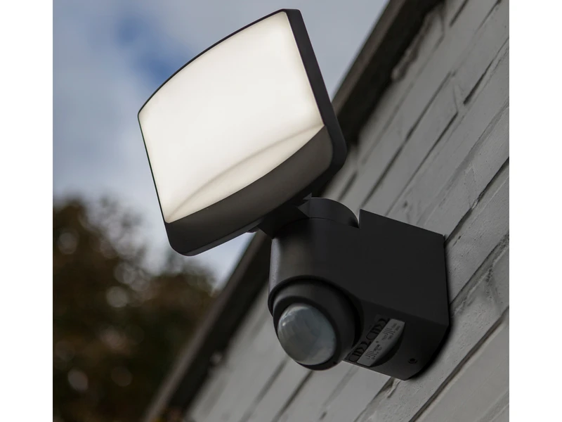 Der Scheinwerferkopf der Leuchte ist dreh- und schwenkbar, so können Sie den für Sie relevanten Bereich ausleuchten und durch den Bewegungsmelder wird nur dann Licht eingeschaltet, wenn es benötigt wird.