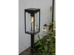Gefertigt ist die 76cm hohe Stehleuchte aus wetterfestem Aluminium in Schwarz matt mit Glasschirm in Transparent, und dank Schutzart IP44 kann sie in fast jedem Outdoor Bereich zur Beleuchtung eingesetzt werden, z.B. als Außenbeleuchtung für Ihren Eingangsbereich, als Terrassenbeleuchtung oder auch als Wegeleuchte in Ihrem Garten.