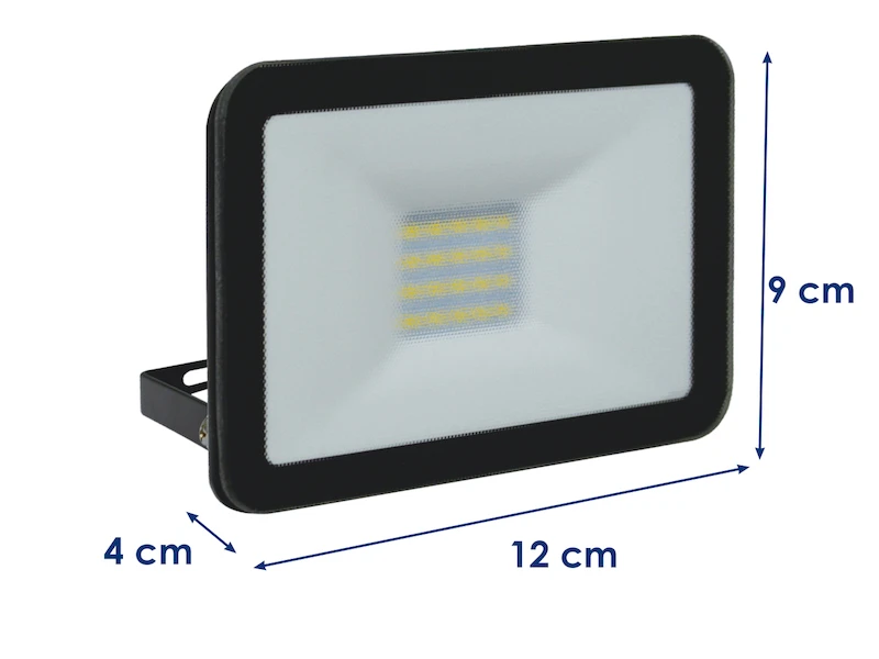 Gefertigt ist der Strahler aus robustem, schwarzem Metall mit einem 4mm dicken Sicherheitsglas. Mit seinem schlanken Design nimmt er auch in einer beengten Arbeitsecke oder in schmalen Nischen wenig Platz ein. Der LED Scheinwerfer überzeugt mit einer starken Leistung von 10 Watt und 900 Lumen in Neutralweiß.
