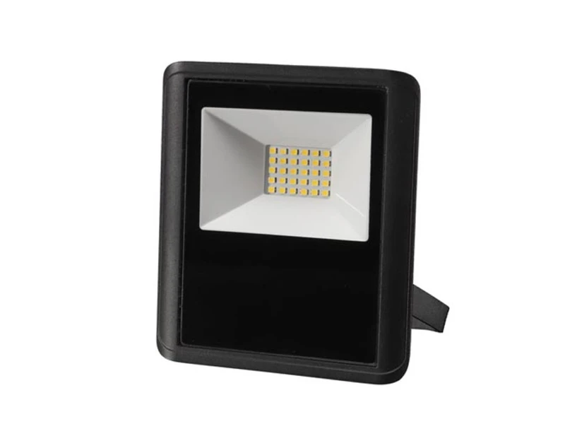 Gefertigt ist der Strahler aus robustem, schwarzem Aluminium. Mit seinem schlanken Design nimmt er auch an beengten Stellen wenig Platz ein. Der LED Scheinwerfer ist gerade einmal 5,3cm dick und hat ein Außenmaß von 14,7 x 13,1cm. Dennoch überzeugt er mit einer starken Leistung von 20 Watt und 1400 Lumen mit 4000 Kelvin in Neutralweiß.