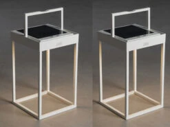 Gefertigt ist sind LED Solarlaternen aus weiß lackiertem Aluminium. Dank der Gestaltung als moderne Laterne fügen sich die Leuchten mühelos in jedes Ambiente ein.