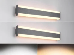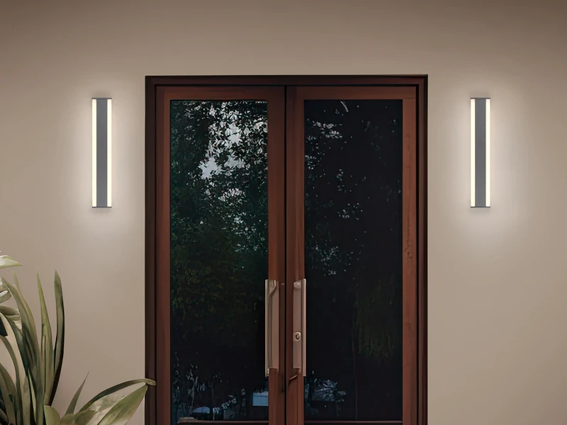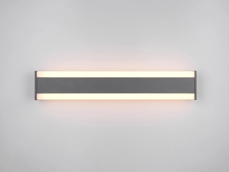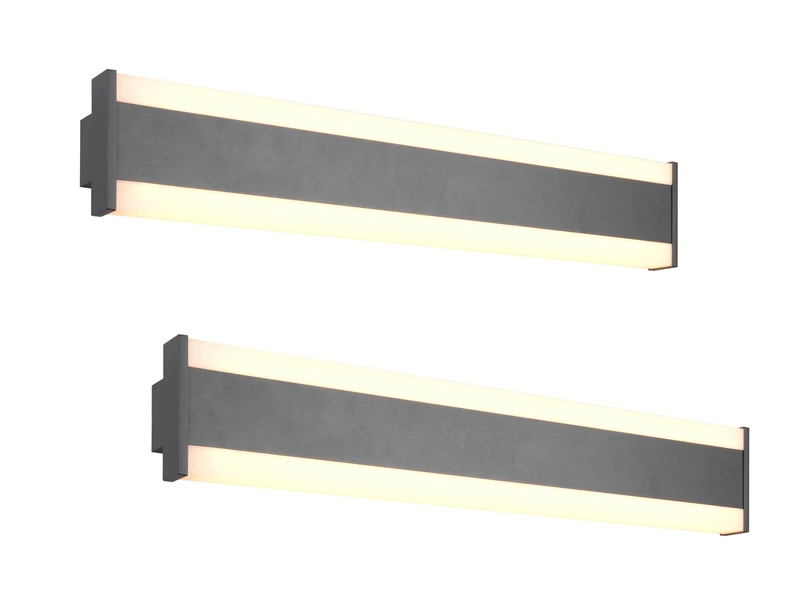 Die 60cm breiten AuĂenwandlampen sind aus Aluminium in der Farbgebung Anthrazit gefertigt und ĂŒberzeugten durch ihre Up and Down Beleuchtung bei der das Licht nach oben und unten austritt und fĂŒr einen schönen Lichteffekt an AuĂenwĂ€nden sorgt.