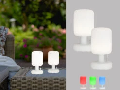 Die beiden Tischleuchten sind echter Alleskönner. Dank der Schutzart IP 44 sind sie wetterfest und können auf der Terrasse, dem Balkon oder beim Camping und Picknick verwendet werden. Und auch im Innenbereich machen die robusten Tischlampen aus weißem Kunststoff eine gute Figur, z.B. als ausgefallene Nachttischlampen oder kleine Lampen auf der Fensterbank.