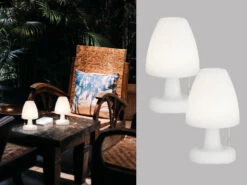 Die beiden Tischleuchten sind echter Alleskönner. Dank der Schutzart IP 44 sind sie wetterfest und können auf der Terrasse, dem Balkon oder beim Camping und Picknick verwendet werden. Und auch im Innenbereich machen die robusten Tischlampen aus weißem Kunststoff eine gute Figur, z.B. als ausgefallene Nachttischlampen oder kleine Lampen auf der Fensterbank.