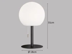 Diese kugelförmigen Tischleuchten sind echter Alleskönner. Dank der Schutzart IP 44 sind sie wetterfest und können auf der Terrasse, dem Balkon oder beim Camping und Picknick verwendet werden. Und auch im Innenbereich machen die robusten Tischlampen mit ihrem schwarzen MetallfuĂ und dem weiĂen Kunststoff Lampenschirm eine gute Figur, z.B. als Nachttischlampen oder als Lampen auf der Fensterbank.
