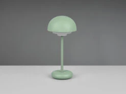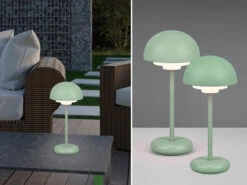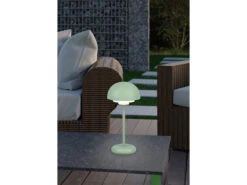 Durch die Klassifizierung IP44 ist die Leuchte vor Spritzwasser geschützt und damit auch für den Außenbereich geeignet. Durch das schlichte und reduzierte Design in Pilz Form wird die grüne Tischleuchte zu einem unaufdringlichen Dekoelement.