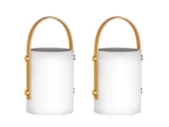 Das beiden Solar Tischleuchten aus unempfindlichem, weißem Kunststoff haben einen Durchmesser von jeweils 11,5 cm und eine Höhe von 24 cm. Dank des integrierten Akkus können Sie sie überall aufstellen, ohne sich Gedanken über ein Kabel machen zu müssen.