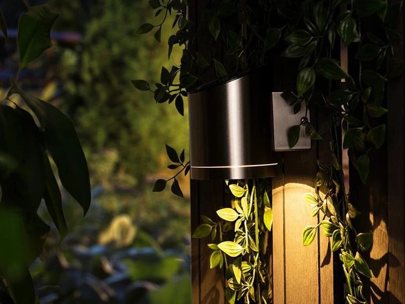 Mittels Dämmerungssensor schaltet sich die Solar Fassadenleuchte automatisch ein und aus, verfügt aber auch über einen separaten Schalter.