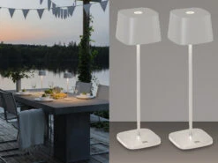 Die Schutzklasse IP54 gewährleistet Ihnen eine zuverlässige Nutzung der Tischleuchten im Freien und ermöglicht es Ihnen, die Leuchten bedenkenlos draußen verwenden zu können, ohne sich um Schäden durch Witterungseinflüsse sorgen zu müssen.