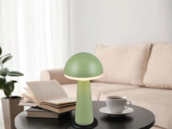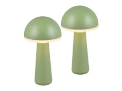Die 30cm hohe Leuchte aus Druckguss Aluminium ist über die mitgelieferte Ladestation (Station mit USB Kabel) ganz einfach aufladbar und kommt überall dort zum Einsatz, wo ein Stromanschluss fehlt. Ihr charakterstarkes Pilzdesign und die zeitgemäße Farbe in Pistaziengrün machen die Tischleuchte zu einem auffälligen Dekorationselement.