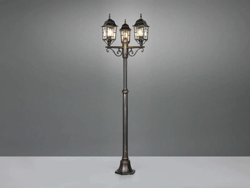 Die Außenleuchte ist mit drei E27 Fassungen ausgestattet und wird mit 3 austauschbaren E27 Filament LED Leuchtmitteln geliefert, die je eine Leistung von 4 Watt und 470 Lumen in warmweiß (2700 Kelvin) haben.