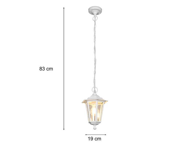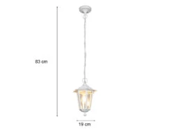 Die Pendelleuchte PIENZA passt sich durch ihr Design im klassischen Landhausstil fast jedem Bereich an und ist eine ideale Außenbeleuchtung für die Terrasse, den Balkon oder den Hauseingang. Gefertigt ist die Außenleuchte aus wetterfestem Aluminium. Durch die Oberfläche in Weiß matt wirkt sie dabei besonders zeitlos. Ergänzt wird die Leuchte durch den Lampenschirm aus klarem Glas, der für die typische Laternenoptik sorgt.