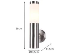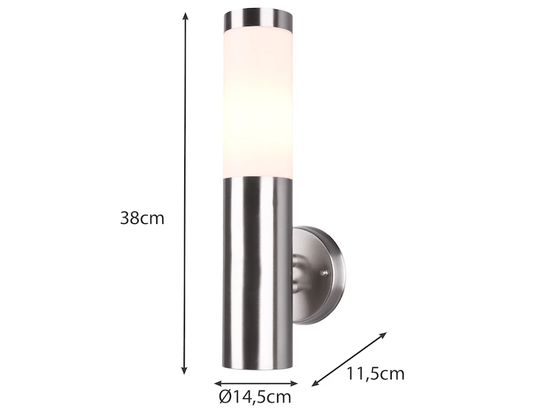 Mit einer Höhe von 38 cm sowie einer Tiefe von 11,5 cm eignet sich die Außenleuchte optimal als Außenbeleuchtung für die Hauswand, den Eingangsbereich oder die Terrasse.