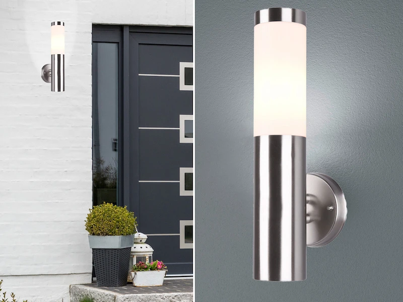 Mit der Schutzklasse IP44 und dem wetterfesten Edelstahl ist diese Außenwandleuchte für den Einsatz im Freien geeignet und kann das ganze Jahr über als Gartenbeleuchtung verwendet werden.