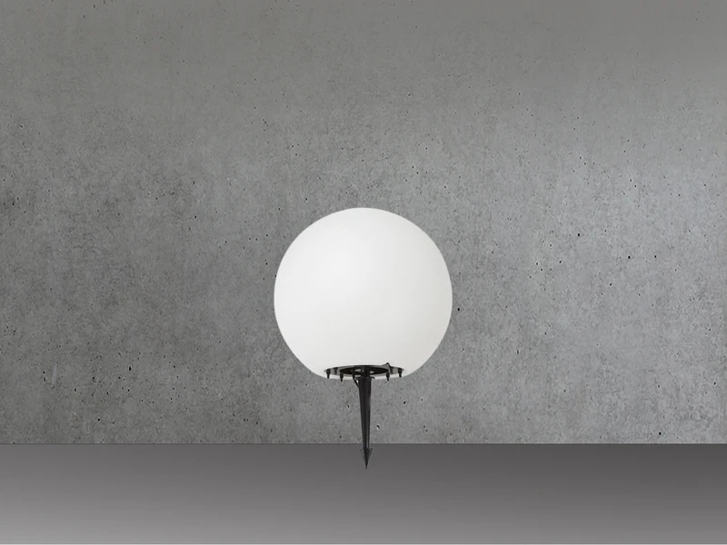 Platzieren Sie die mit 3 Meter Stromkabel und Erdspieß ausgestattete Kugelleuchte dort wo Licht benötigt wird. Die Gartenkugel mit 25cm Durchmesser schafft eine stimmungsvolle Atmosphäre auf der Terrasse am Teich oder dem Balkon.