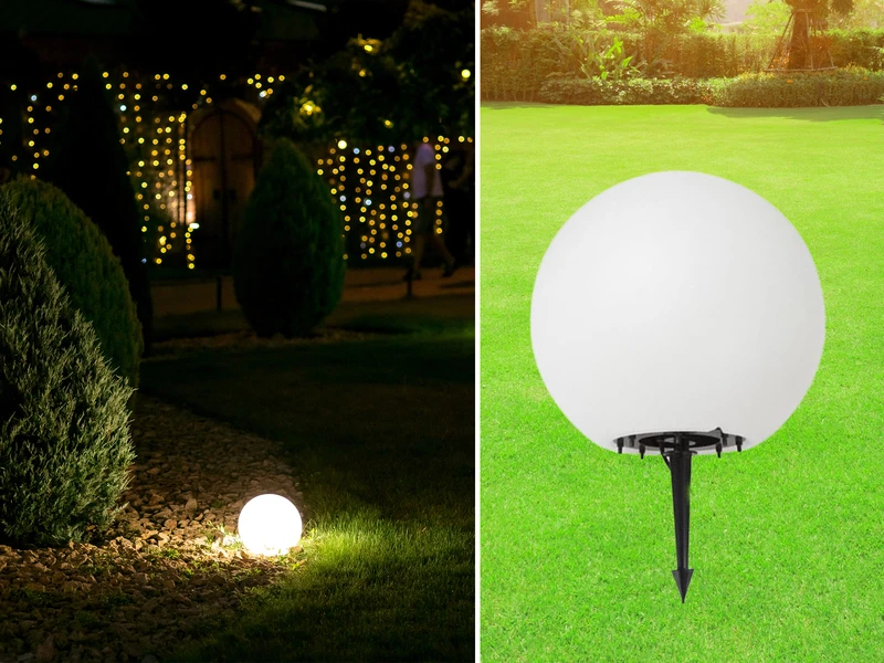 MeineWunschleuchte Garten Kugelleuchte Mit Erdspieß, 3m Kabel IP65 & Smarter LED, Ø45cm