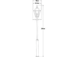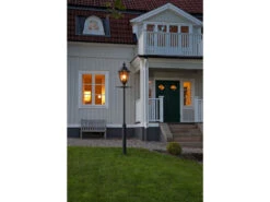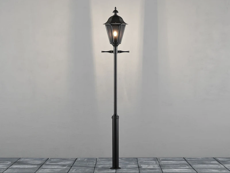 Gefertigt ist Mastleuchte, die an eine nostalgische Straßenlaterne erinnert, aus schwarzem Aluminium und rauchfarbenem Acrylglas. Mit ihrer Höhe von 260cm sorgt die nostalgische Außenleuchte für eine schöne Gartenbeleuchtung oder Straßenbeleuchtung.