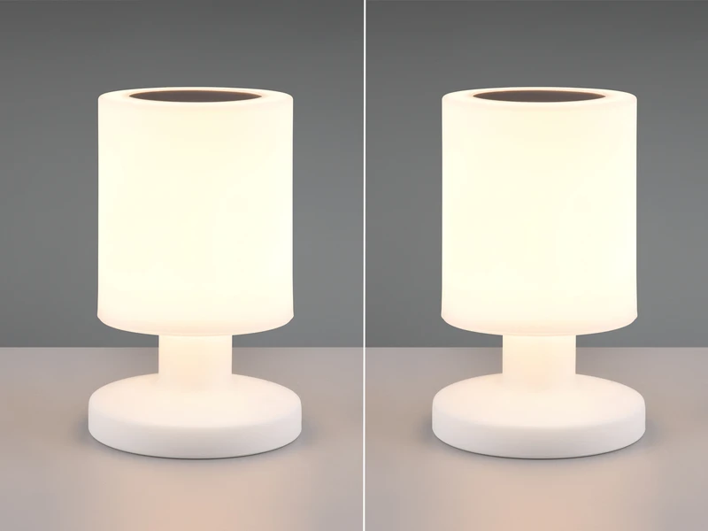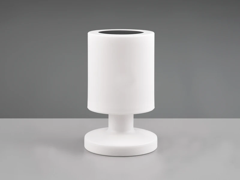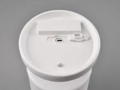 Durch die Schutzart IP44 ist die Tischleuchte zudem gegen Spritzwasser geschützt und eignet sich problemlos für den Außenbereich. Das moderne Design aus weißem Kunststoff ergänzt Ihre Innen- oder Außeneinrichtung mit einer dekorativen Leichtigkeit.