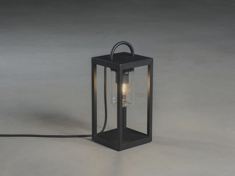 Gefertigt ist die LED Gartenleuchte aus schwarz lackiertem Aluminium mit klarem Glas.