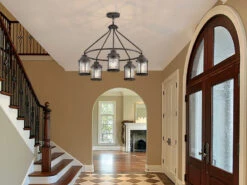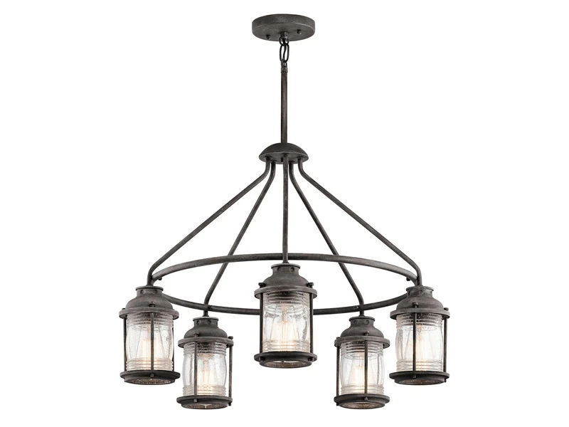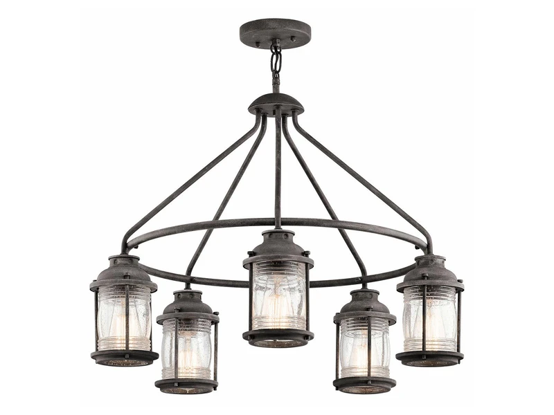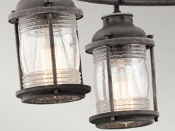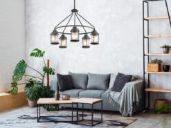 Diese Außenleuchte im Industrial Style besticht durch ihr rustikales Design und ihre hochwertige Verarbeitung. Der Korpus der Leuchte besteht aus anthrazit farbigem Stahl, die 5 einzelnen Lampenschirme aus strukturiertem Glas. Zudem hat sie einen Durchmesser von 66cm und sie kann in der Höhe von 62 bis 147cm eingestellt werden.