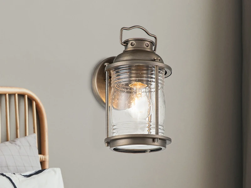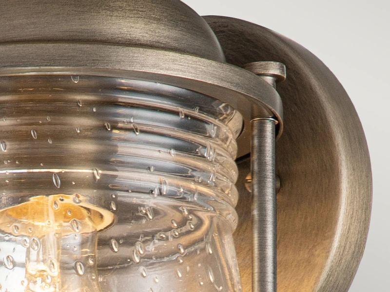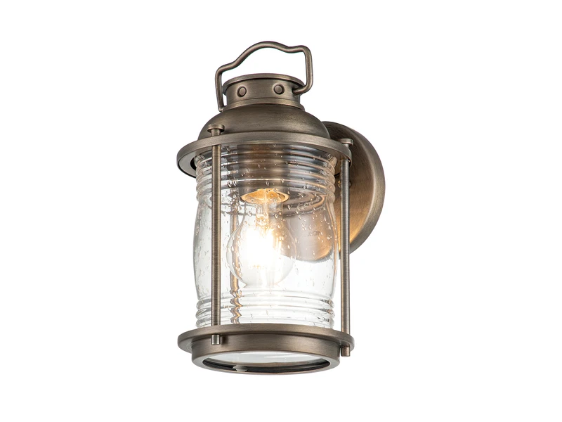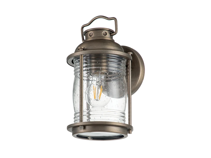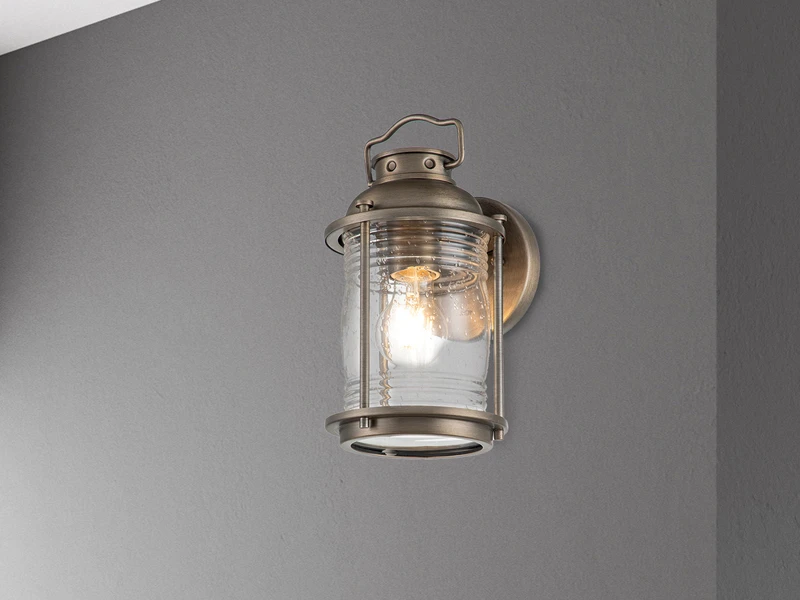 Das rustikale Erscheinungsbild der Wandlaterne im Industriedesign erinnert an Schiffslampen und passt an klassische Aussenfassaden, oder sorgt für einen spannenden Stilbruch an modernen Außenwänden.
