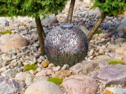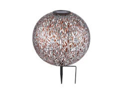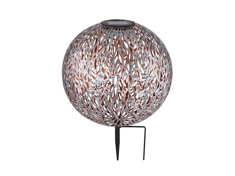 Mit diesen LED Erdspießleuchten aus Metall zaubern Sie ein märchenhaftes Ambiente in Ihrem Garten oder auf Ihrem Balkon. Die kugelförmigen Solarleuchten in Silber Antik erzeugen dank des gestanzten Metall und dem goldfarbenen Inneren ein eindrucksvolles Lichtspiel.