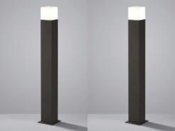 Gefertigt sind die Stehleuchten aus wetterfestem Druckguss Aluminium versehen mit weißen Kunststoff Abdeckung. Durch die Oberfläche in Anthrazit wirkt sie dabei besonders elegant.