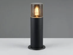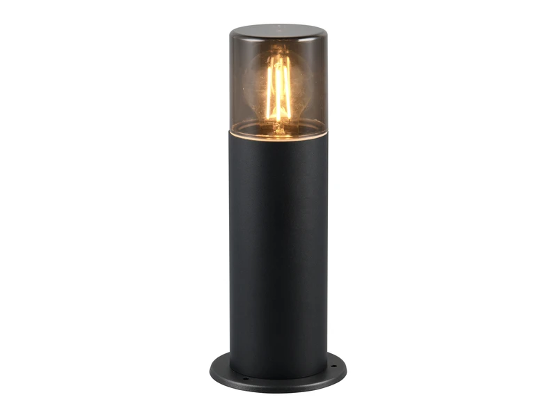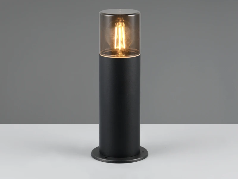 Mit ihrem modernen Erscheinungsbild in zeitlosem Schwarz matt und rauchfarbigem Kunststoff lässt sich die kleine Wegeleuchte vielfältig kombinieren.
