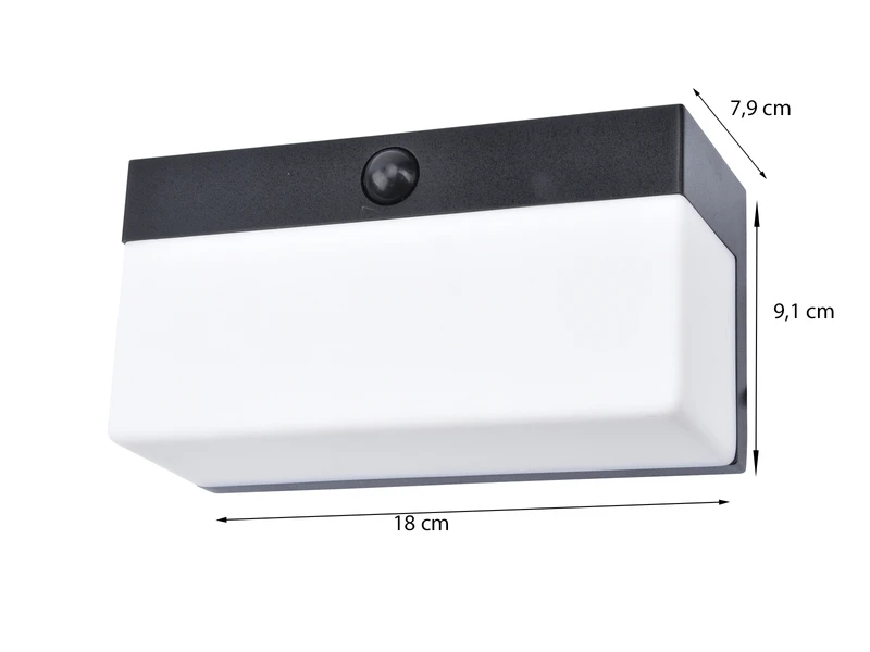 Bei einer Breite von 18cm und einer Höhe von 9,1cm hat sie eine Ausladung von 7,9cm. Durch die geschickte Lichtstreuung nach unten können Sie den gewünschten Außenbereich angenehm blendfrei ausleuchten und erhalten dabei einen schönen Lichteffekt.