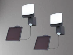 Die kompakte Wandleuchte hat ein separates Solarmodul mit einem 5 Meter langen Kabel.