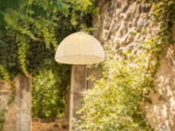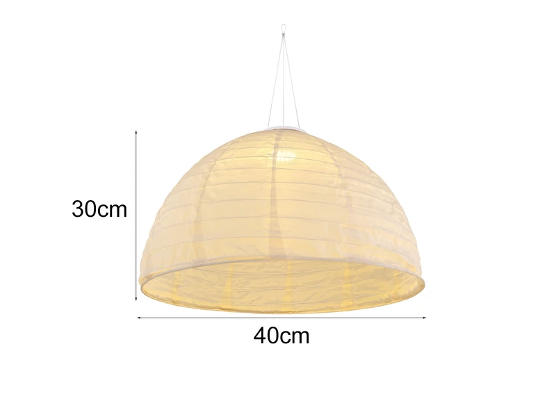 Diese Ø40cm Solarhängeleuchte besteht aus Kunststoff und Leinen in Weiß, in dessen Inneren sich ein LED mit 0,2 Watt und 1.800 Kelvin in warmweiß befindet, welches für gemütliches Licht sorgt. Die Außenleuchte wird über ein Solarpanel tagsüber aufgeladen, der inkludierte AA NiMh Akku ist austauschbar.